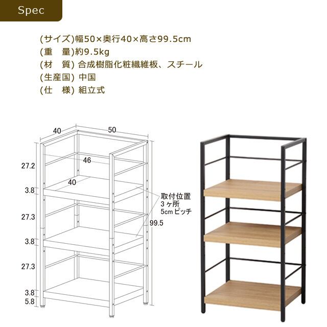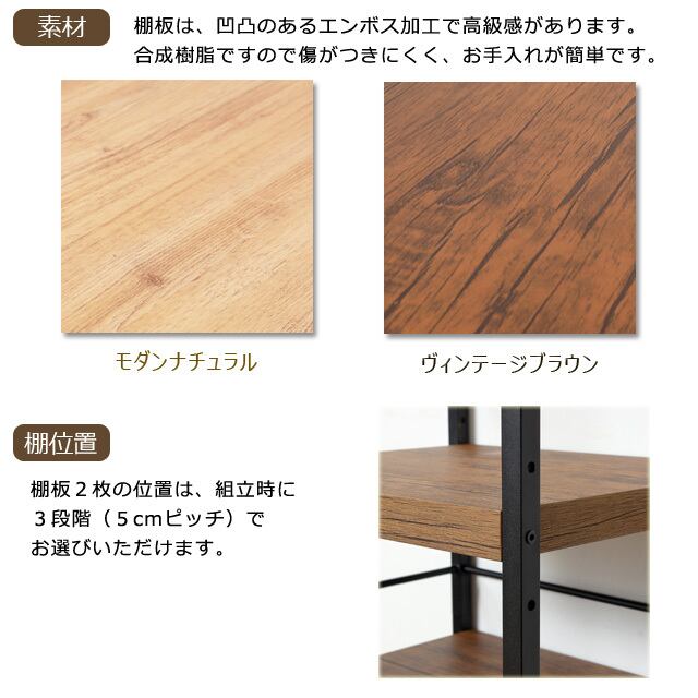・棚板2枚の高さは、5cmピッチで3段階に調整可能
