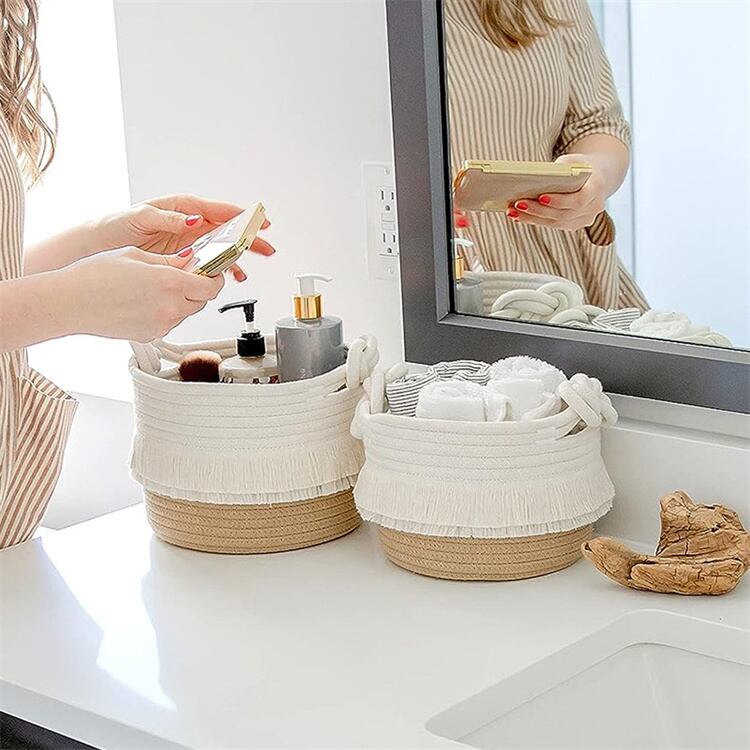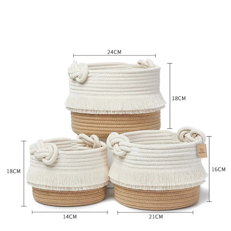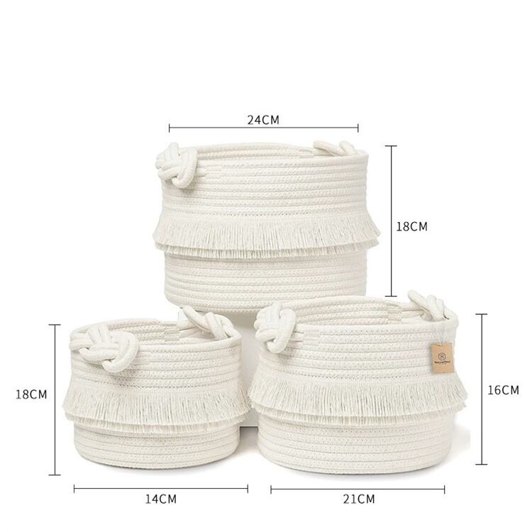 【3点セット】フリンジ付き ロープ収納バスケット ナチュラルインテリア