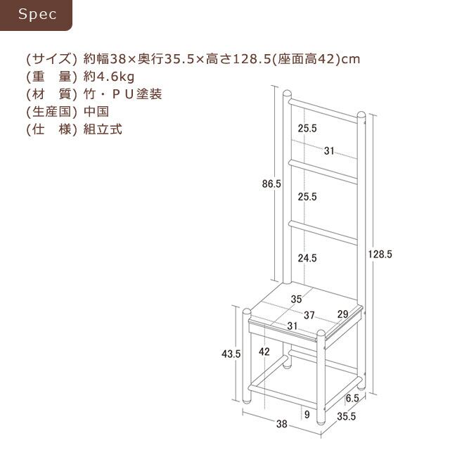 【商品サイズ】約 幅38×奥行35.5×高さ128.5(座面高42)cm