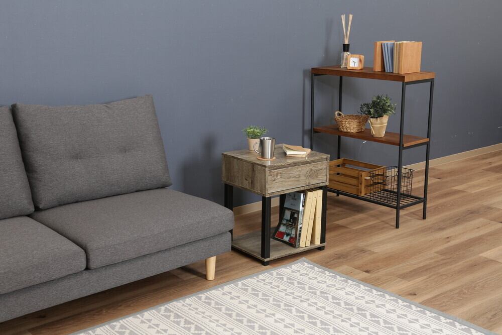 リビング、寝室、玄関など、さまざまな場所で活躍する、実用性とデザイン性を兼ね備えたサイドテーブルです。
